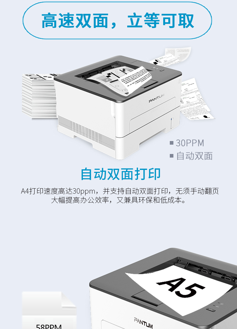 商品名称: 奔图 PANTUM P3010D(自动双面打印/黑白)激光打印机