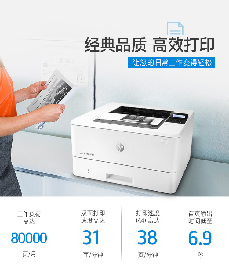 商品名称: 惠普 HP M405DN (自动双面打印/有线网络打印/黑白) 激光打印机