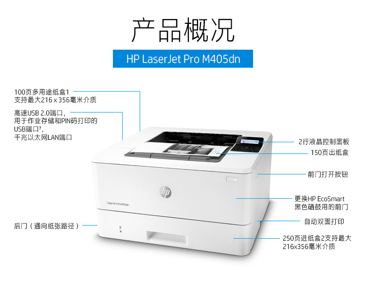 • 商品名称:惠普 HP M405DN (自动双面打印/有线网络打印/黑白) 激光打印机