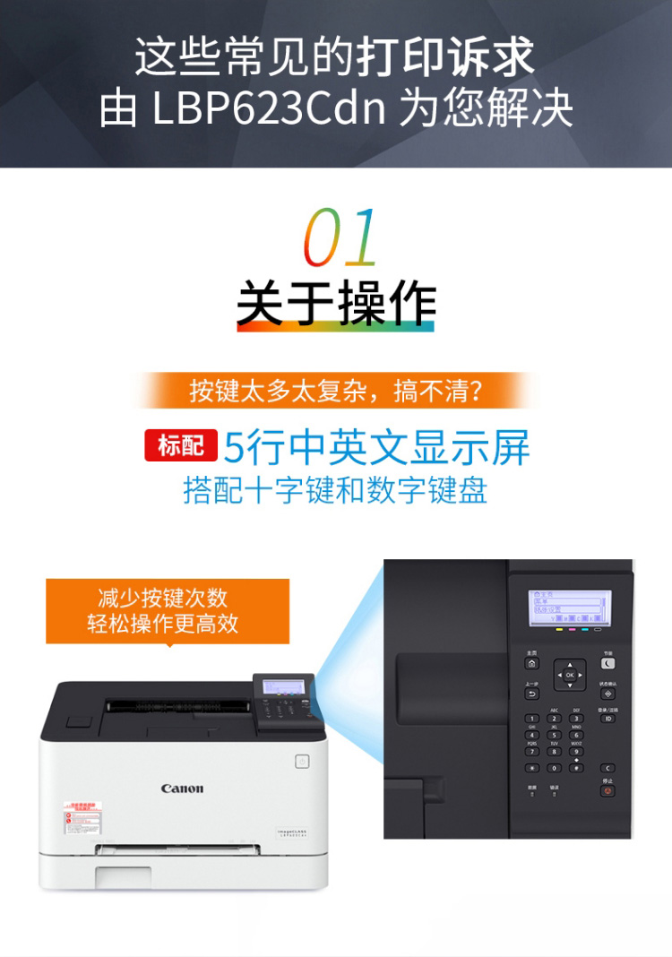 商品名称: 佳能 CANON LBP623CDN (有线网络打印/自动双面打印/彩色) 激光打印机