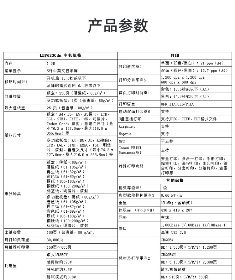 • 商品名称:佳能 CANON LBP623CDN (有线网络打印/自动双面打印/彩色) 激光打印机