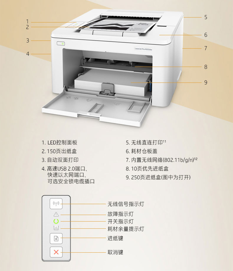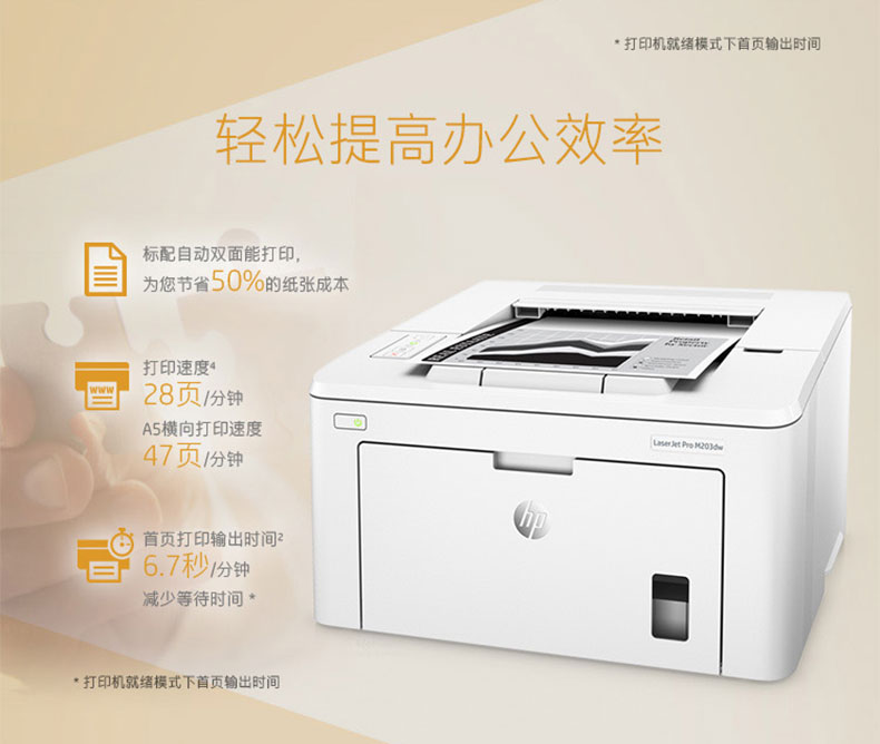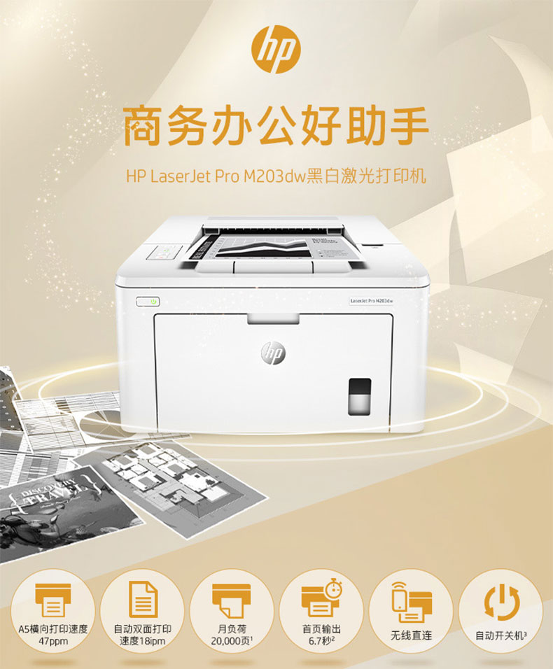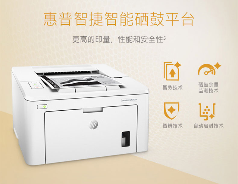 • 商品名称:惠普 HP LASERJET PRO M203DW(有线网络打印/自动双面打印/黑白)激光打印机