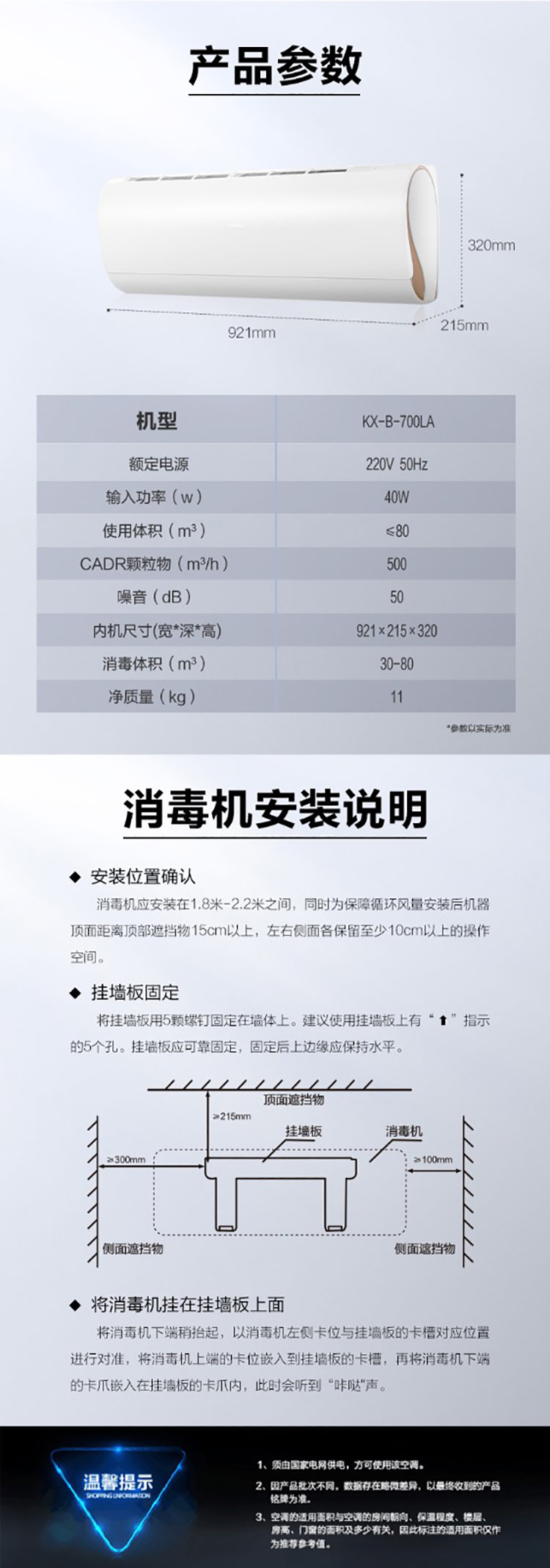 • 商品名称:海尔/Haier KX-B-700LA 空气净化器/加湿器 空气消毒机挂式等离子空气消毒机 白色