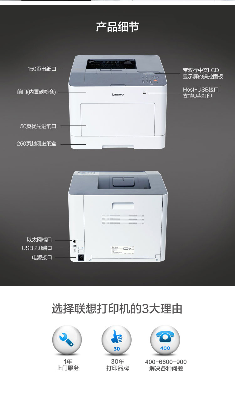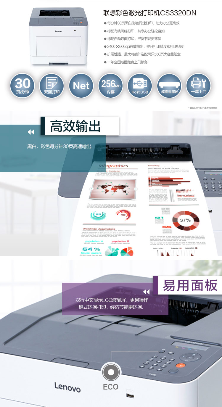 商品名称: 联想 LENOVO CS3320DN(有线网络打印/自动双面打印/彩色激光)激光打印机