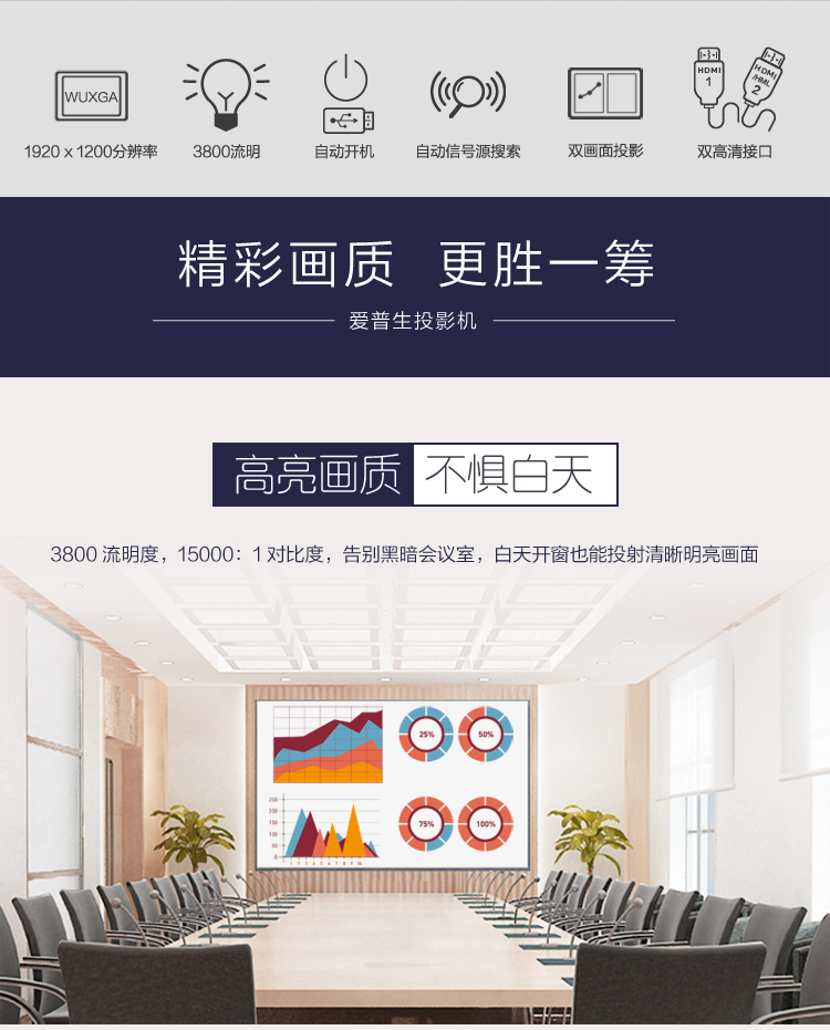 爱普生 EPSON CB-990U(3LCD/3800流明/1920×1200DPI)投影机