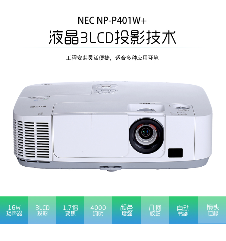 • 商品名称:NEC NP-P401W+ 投影仪 投影机办公 高清宽屏 4000流明 HDMI