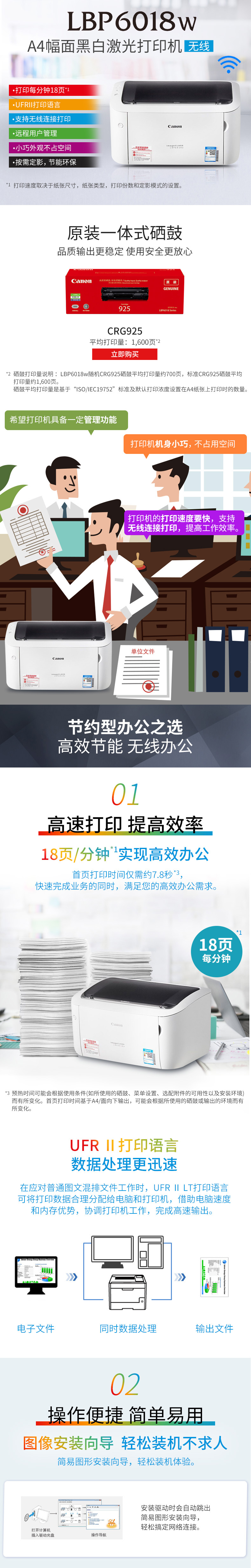 • 商品名称:佳能 CANON LASERSHOT LBP6018W 无线网络打印/黑白激光 激光打印机