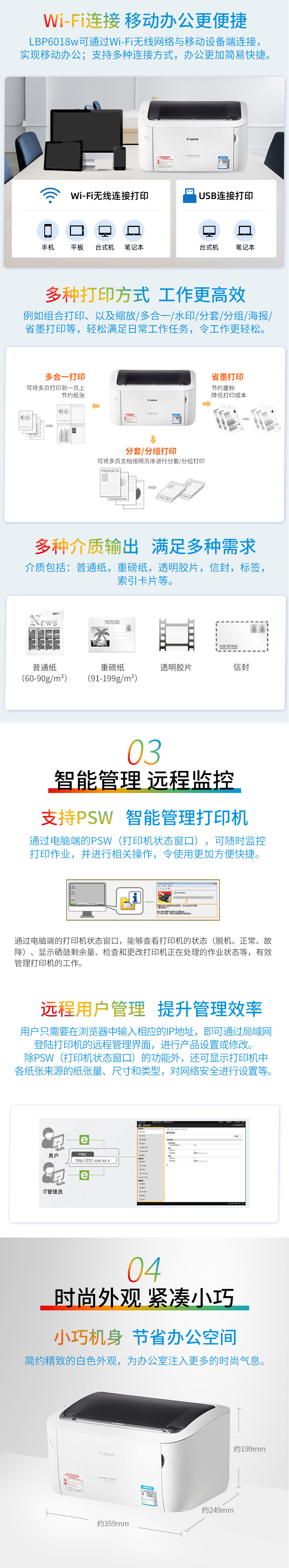商品名称: 佳能 CANON LASERSHOT LBP6018W 无线网络打印/黑白激光 激光打印机