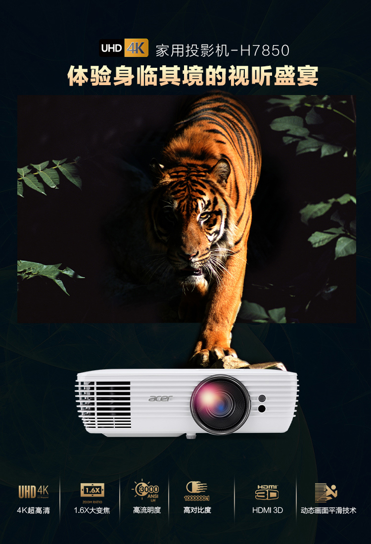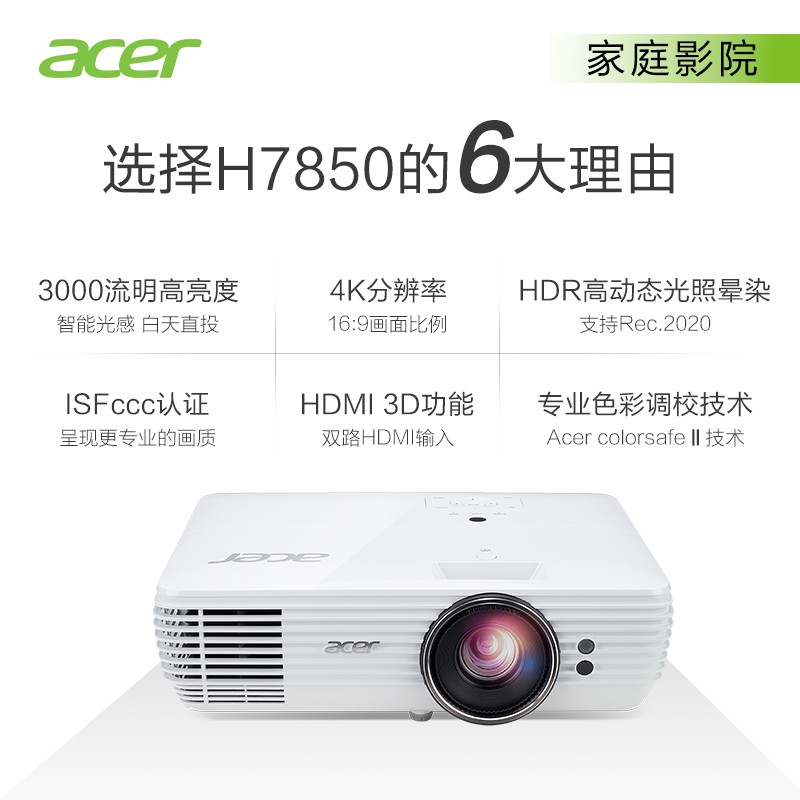 宏碁 ACER H7850(DLP/3000流明/3840*2160)投影机