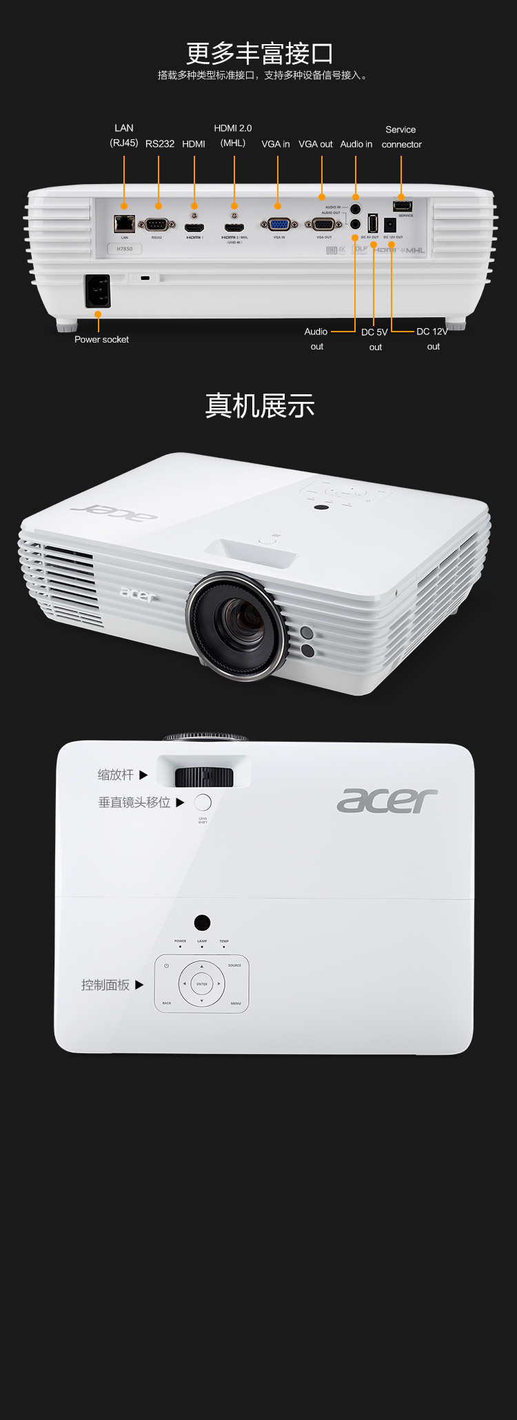办公设备  > 会议/演示设备  > 投影演示  >  宏碁  >  宏碁 ACER H7850(DLP/3000流明/3840*2160)投影机