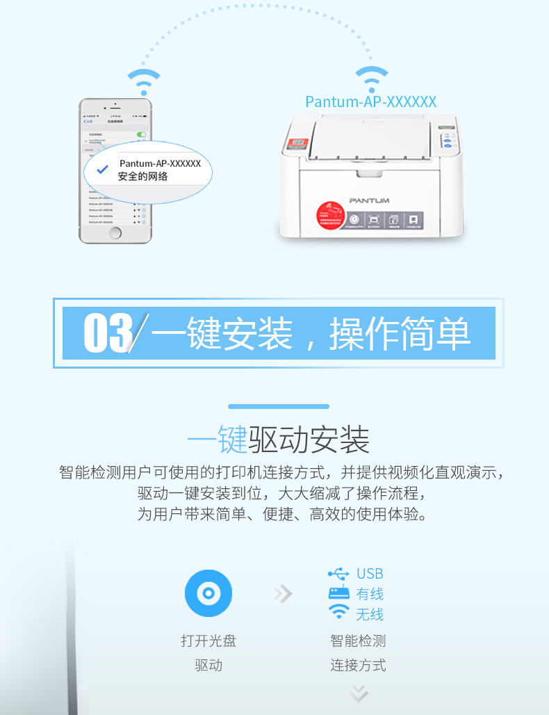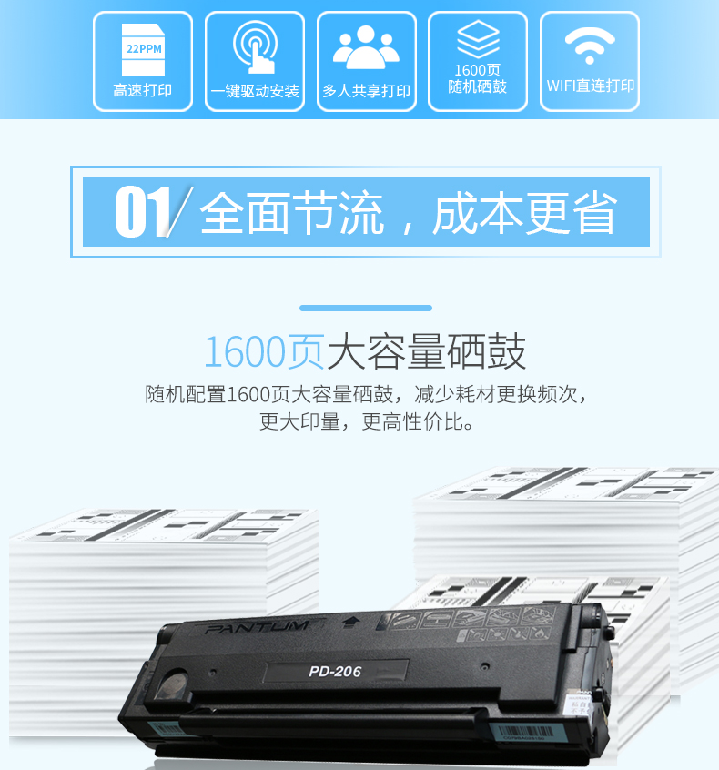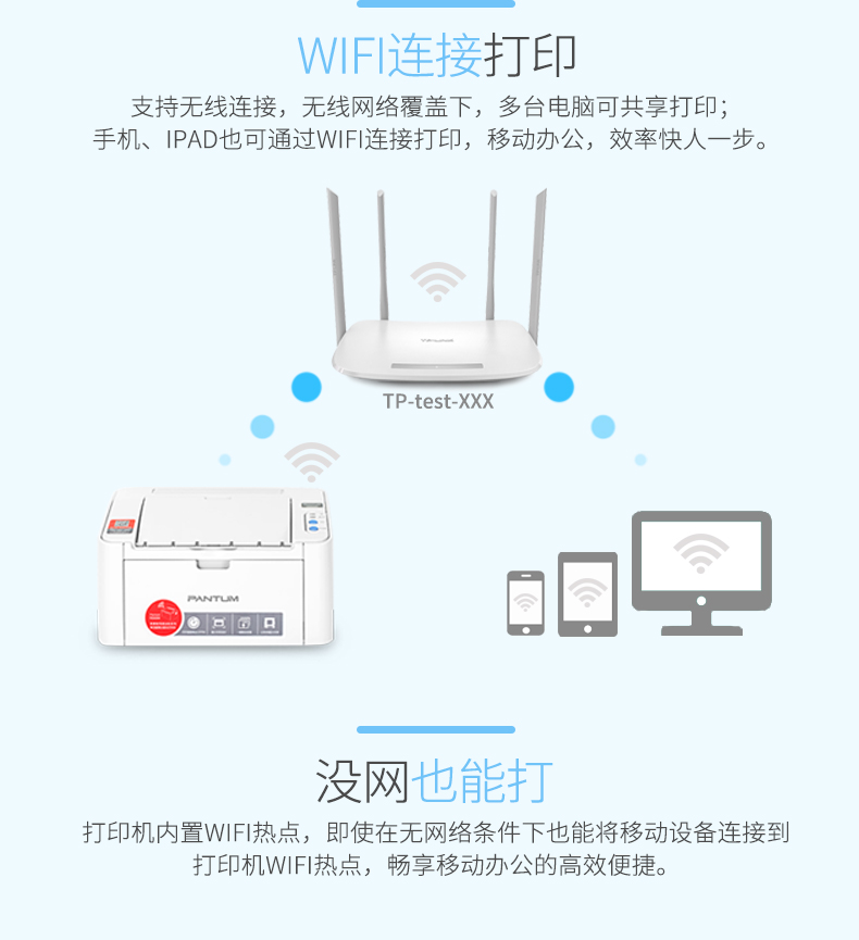 • 商品名称:奔图 PANTUM P2506W(无线/有线网络打印/手动双面打印/黑白)激光打印机