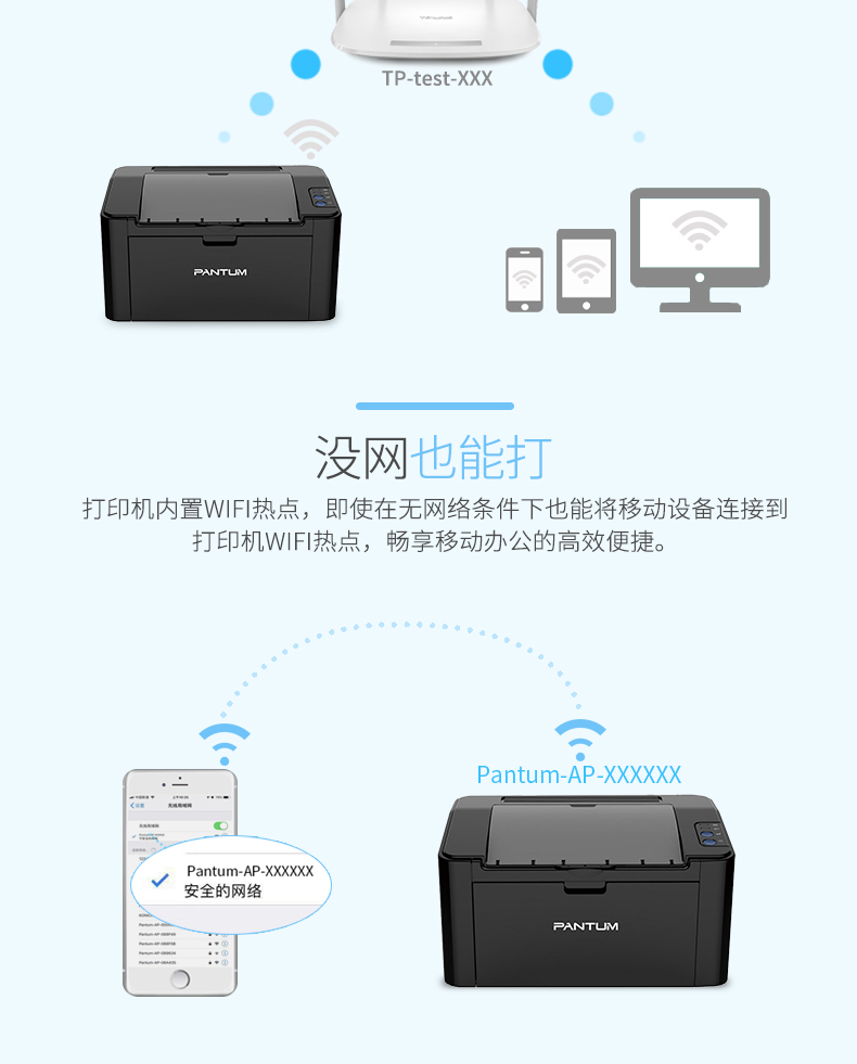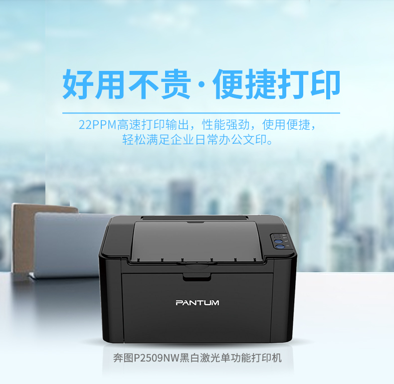 商品名称: 奔图 PANTUM P2509NW(无线/有线网络打印/手动双面打印/黑白)激光打印机