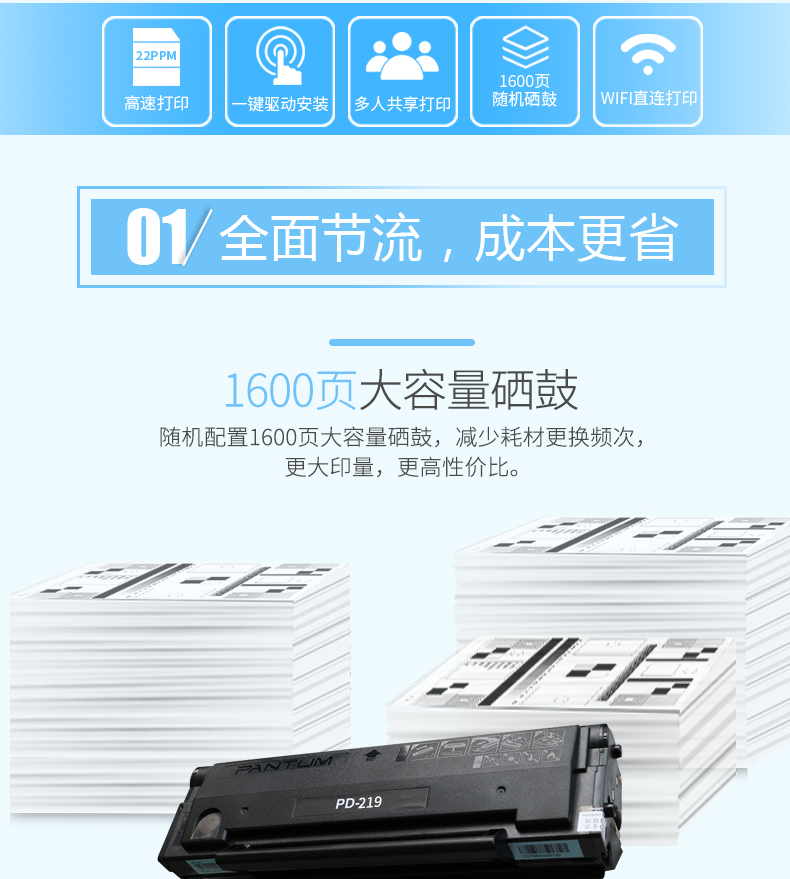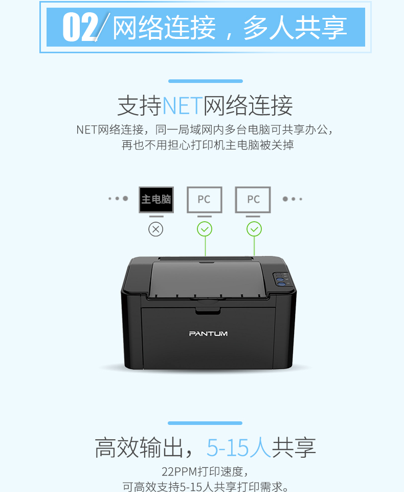• 商品名称:奔图 PANTUM P2509NW(无线/有线网络打印/手动双面打印/黑白)激光打印机