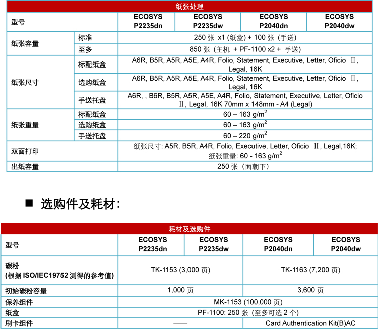 • 商品名称:京瓷 KYOCERA ECOSYS P2235DW(无线网络打印/双面打印/黑白)激光打印机