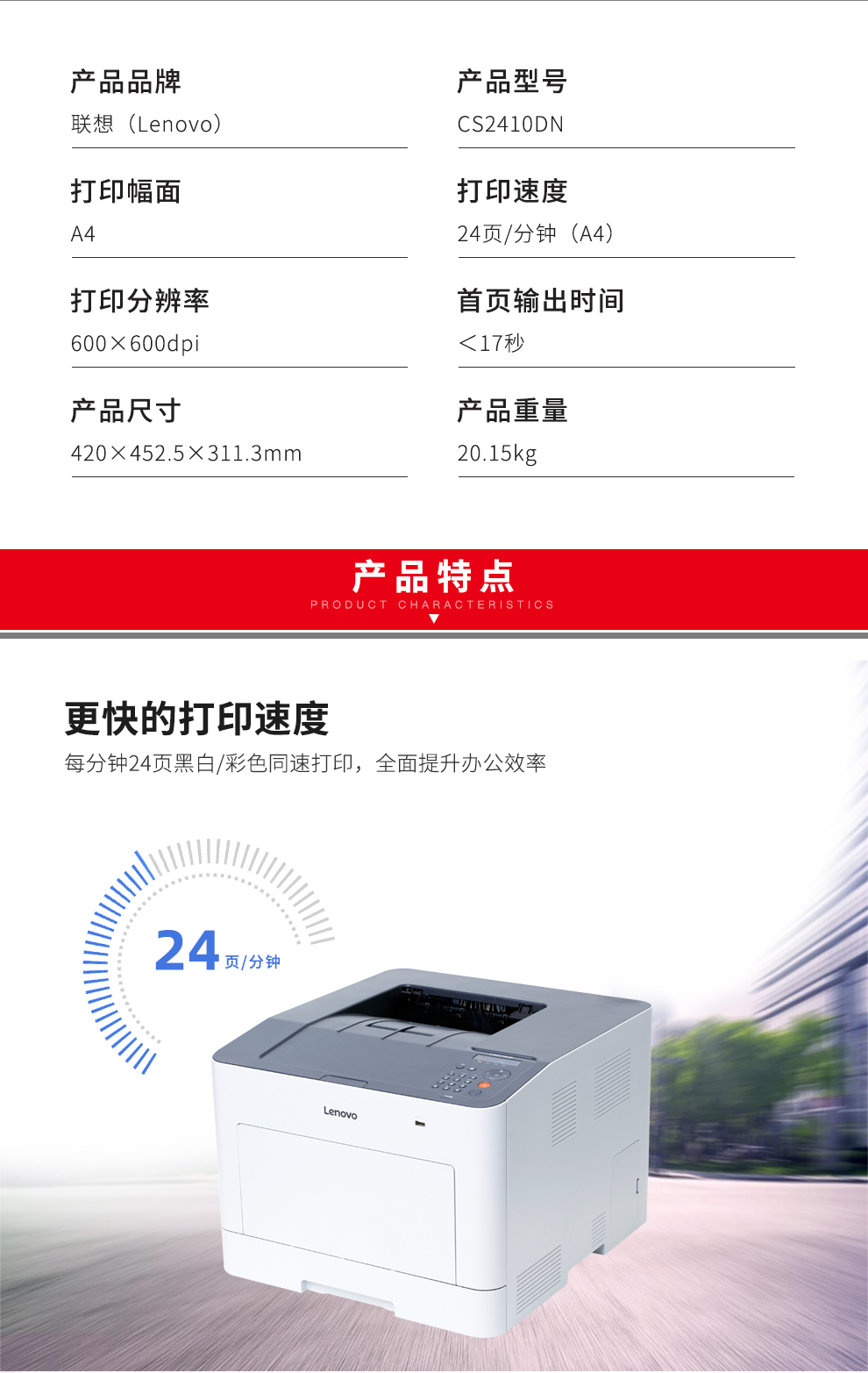 • 商品名称:联想 LENOVO CS2410DN (有线网络打印/自动双面打印/彩色激光) 打印机