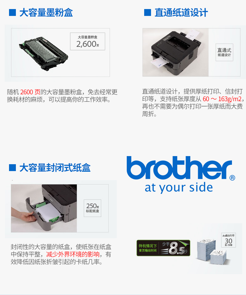 • 商品名称:兄弟 BROTHER 2560DN 有线网络打印/自动双面打印/黑白激光 激光打印机
