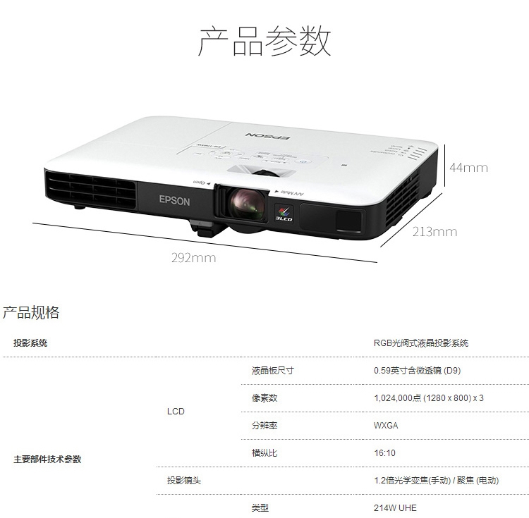 • 商品名称:爱普生 EPSON CB-1785W(3LCD/3200流明/1200×800DPI)投影机
