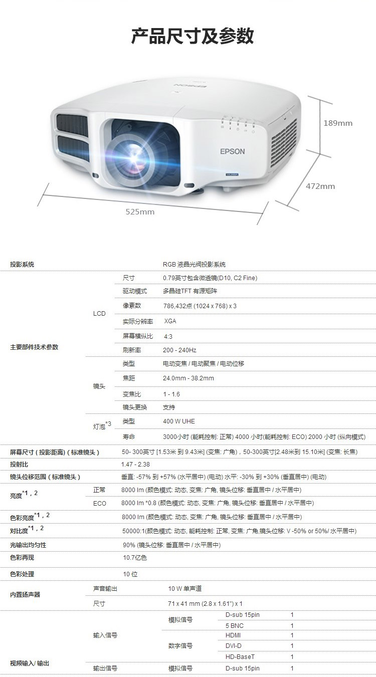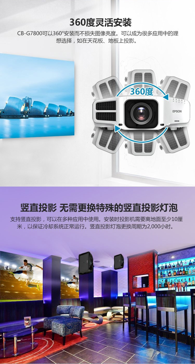 • 商品名称:爱普生 EPSON CB-G7800(3LCD/8000流明/1024×768DPI)投影机