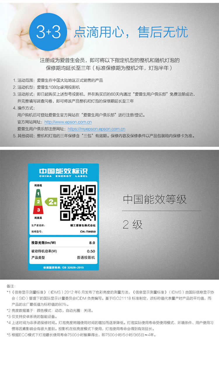 • 商品名称:爱普生 EPSON CH-TW650(3LCD/3100流明/1920×1080DPI)投影机