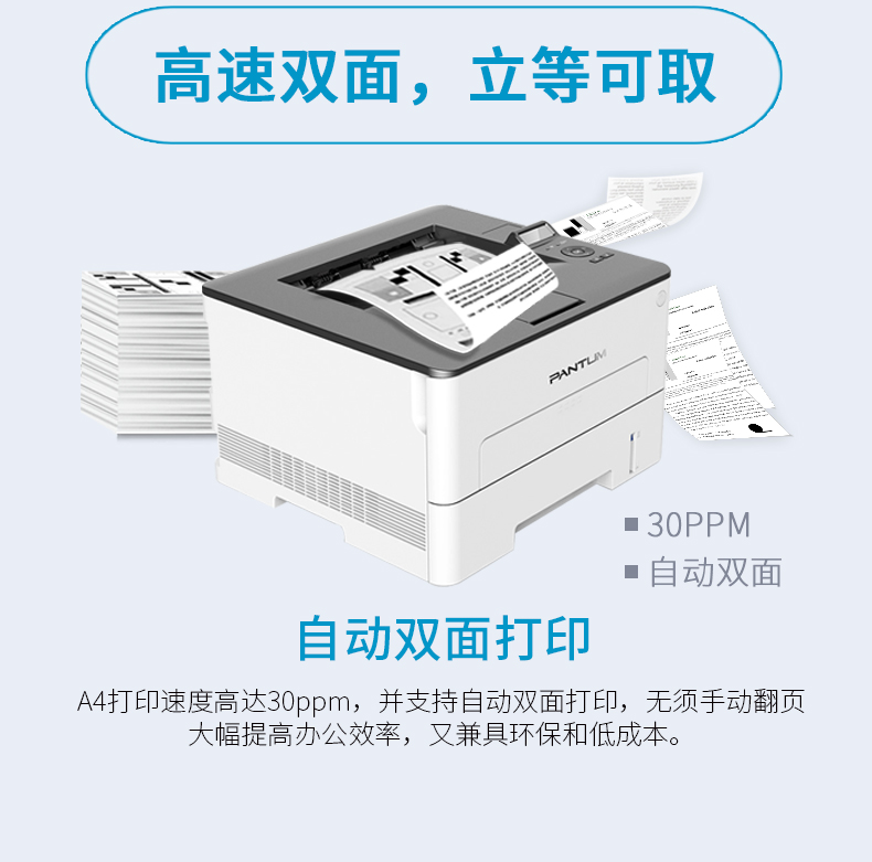商品名称: 奔图 PANTUM P3010DW(无线/有线网络打印/自动双面打印/黑白)激光打印机