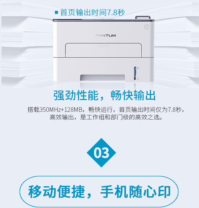 • 商品名称:奔图 PANTUM P3010DW(无线/有线网络打印/自动双面打印/黑白)激光打印机