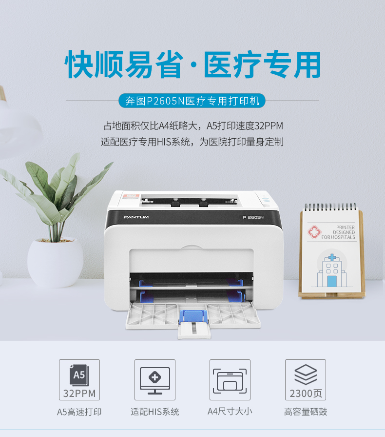 • 商品名称:奔图 PANTUM P2605N(有线网络打印/手动双面打印/黑白)激光打印机