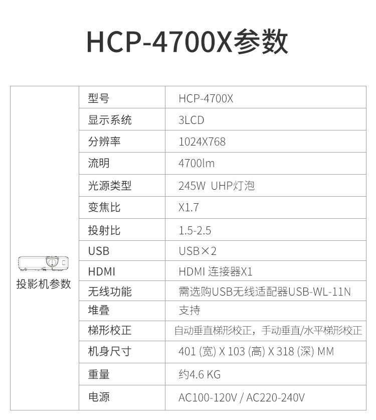 商品名称: 日立 HITACHI HCP-4700X(LCD/4700流明/1024×768DPI)投影机