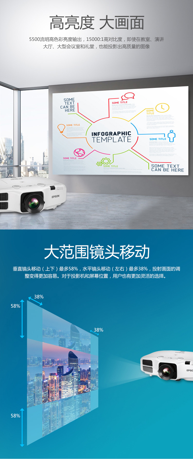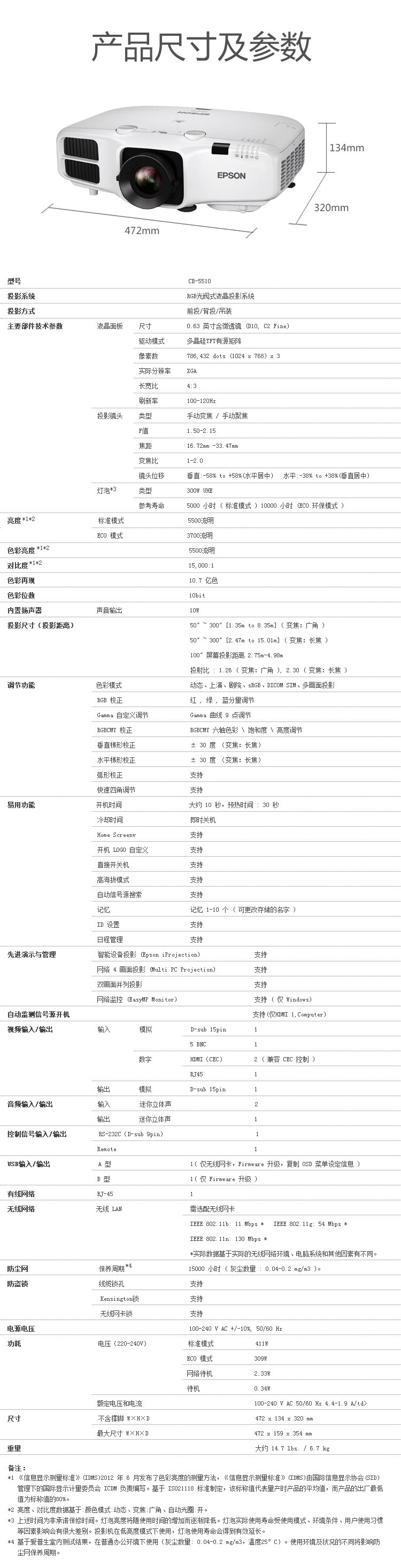 • 商品名称:爱普生 EPSON CB-5510(LCD/5500流明/1024×768DPI)投影机