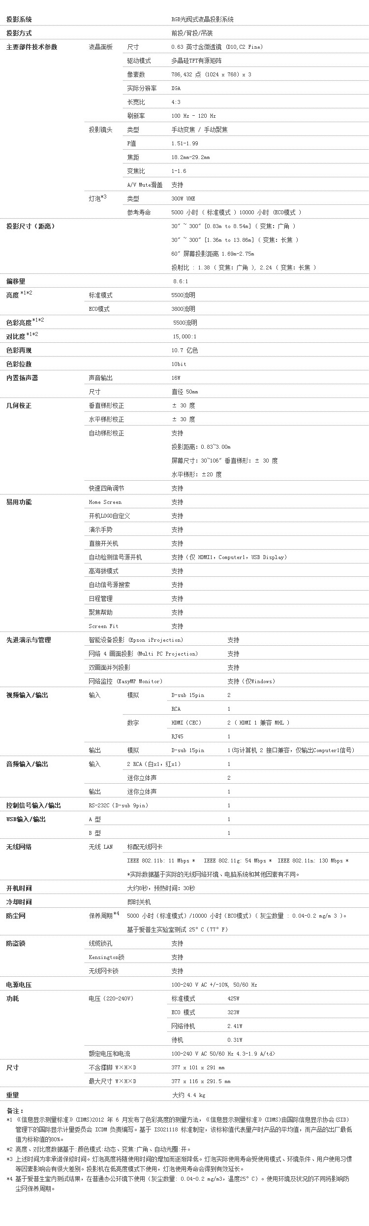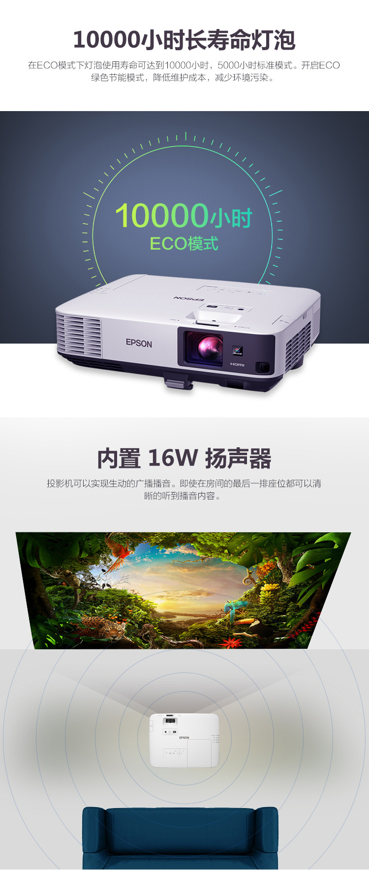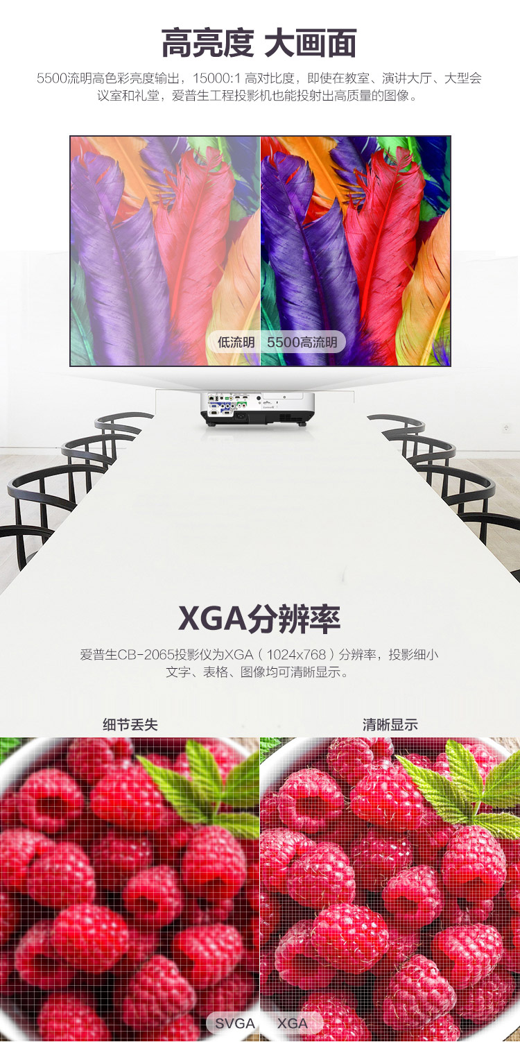• 商品名称:爱普生 EPSON CB-2065(3LCD/5500流明/1024×768DPI)投影机