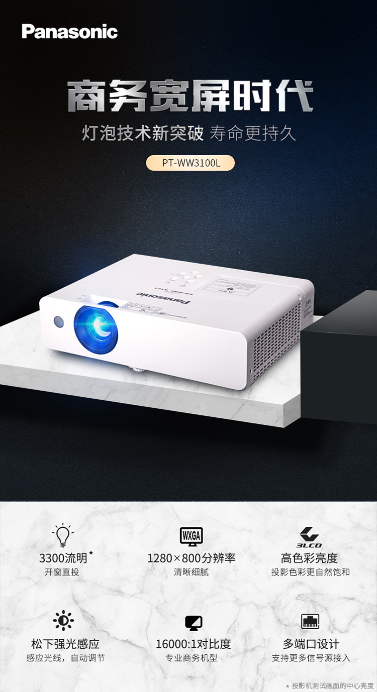 • 商品名称:松下 PANASONIC PT-WW3100L(LCD/3300流明/1280×800DPI)投影机