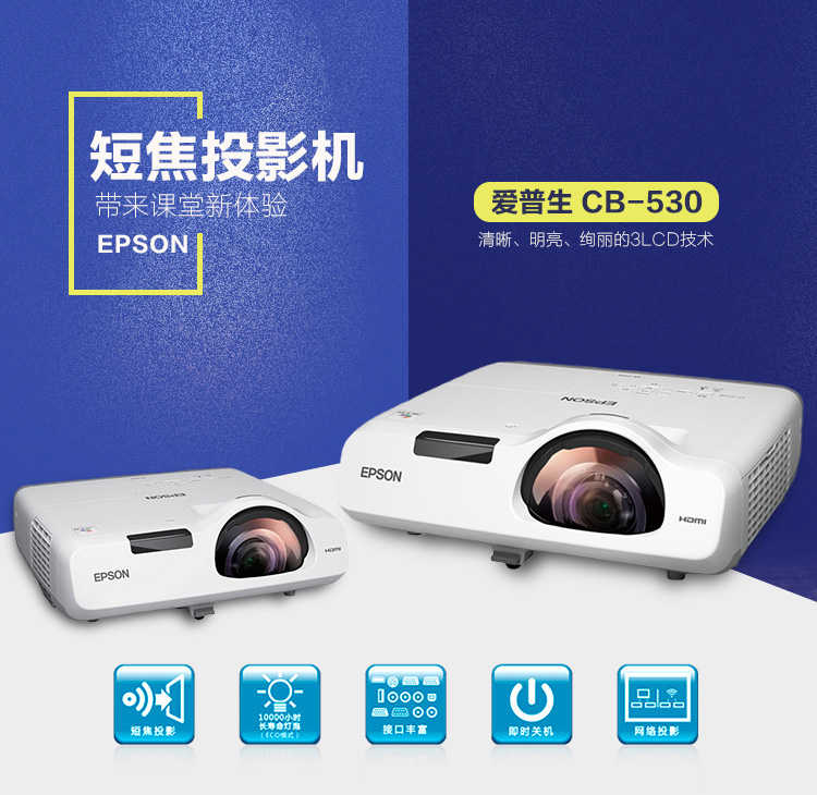商品名称: 爱普生 EPSON CB-530(LCD/3200流明/1024×768DPI)投影机