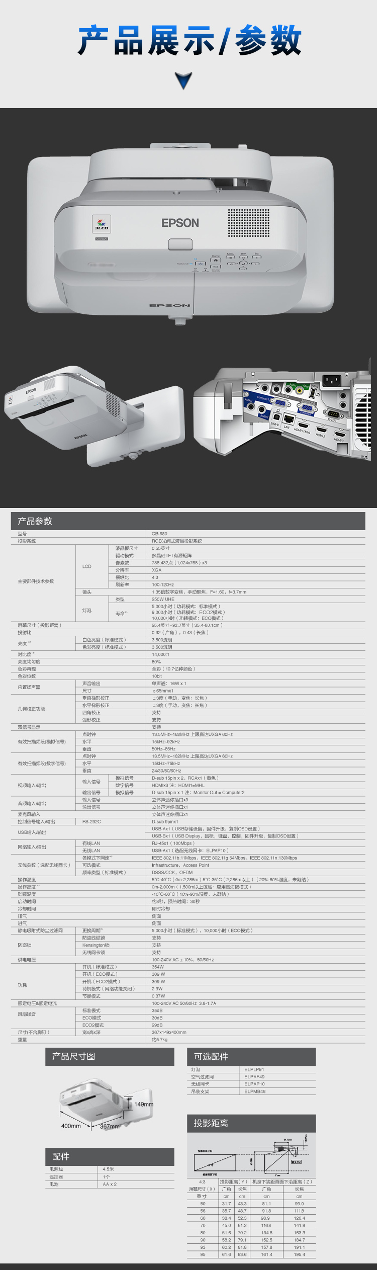 办公设备  > 会议/演示设备  > 投影演示  >  爱普生/EPSON  >  爱普生 EPSON CB-680(3LCD/3500流明/1024×768DPI)投影机