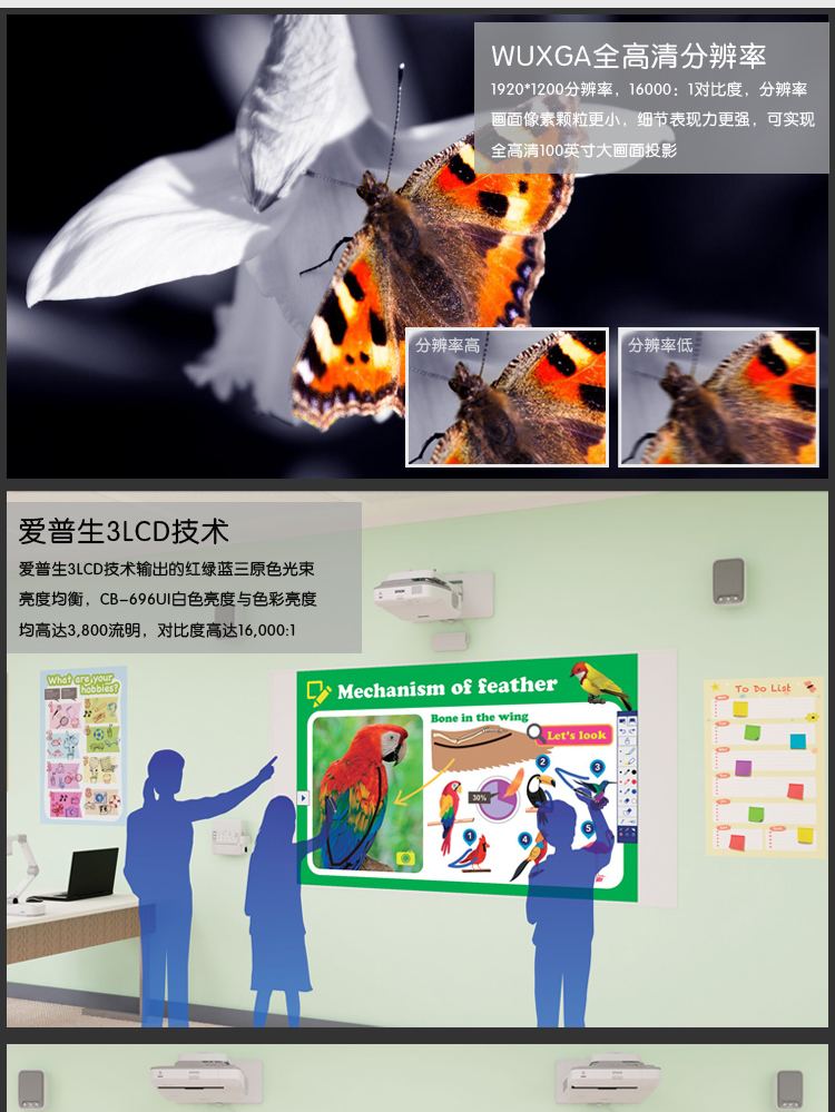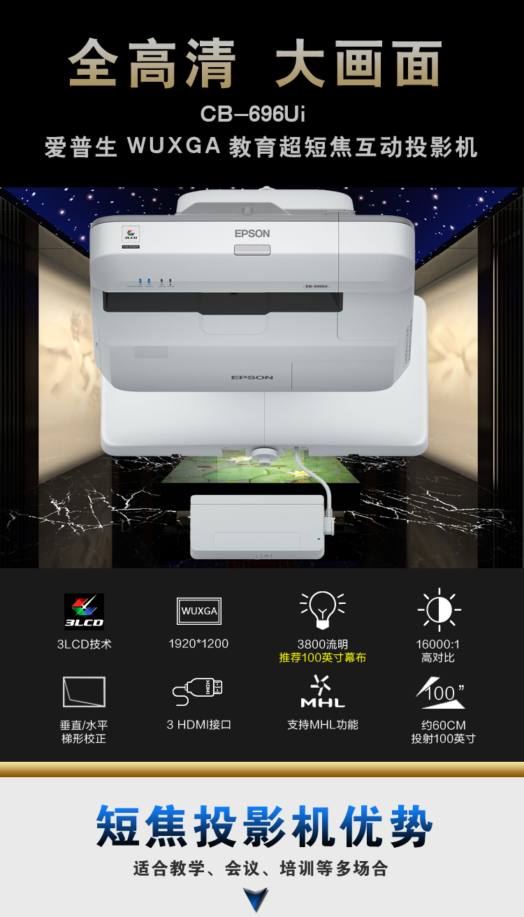 爱普生 EPSON CB-696UI(3LCD/3800流明/1920×1200DPI)投影机