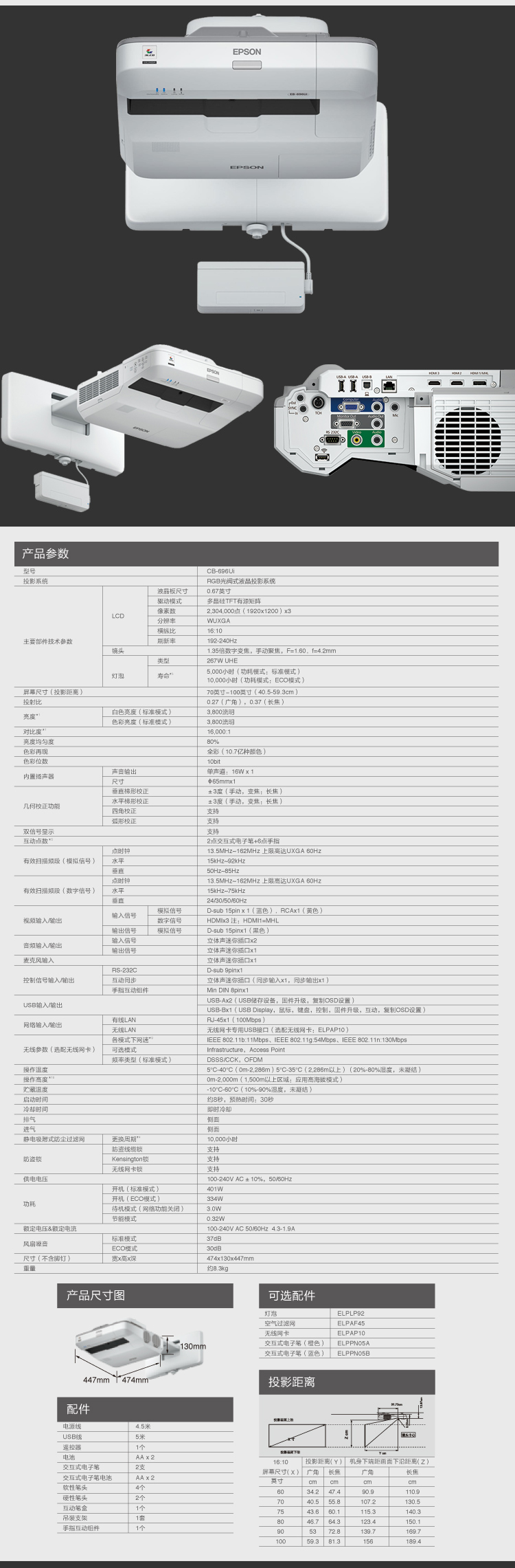 商品名称: 爱普生 EPSON CB-696UI(3LCD/3800流明/1920×1200DPI)投影机