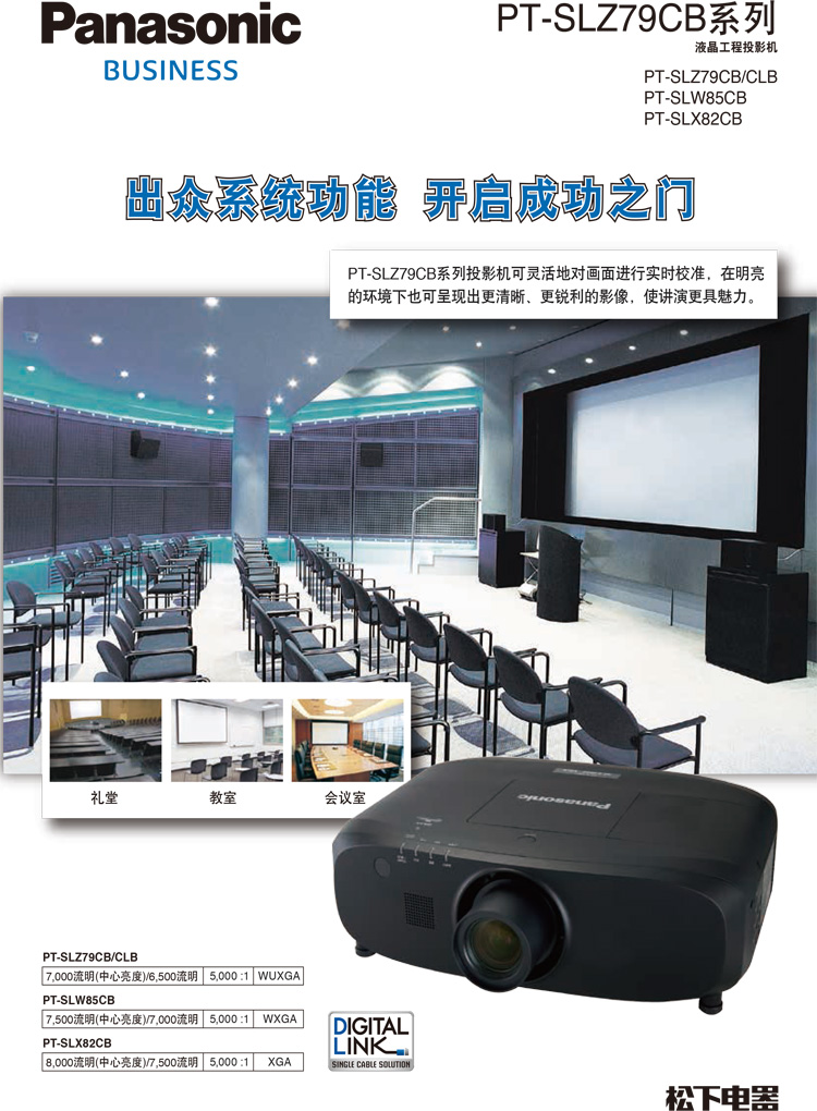 松下 PANASONIC PT-SLX82CB(LCD/8000流明/1024×768DPI)投影机
