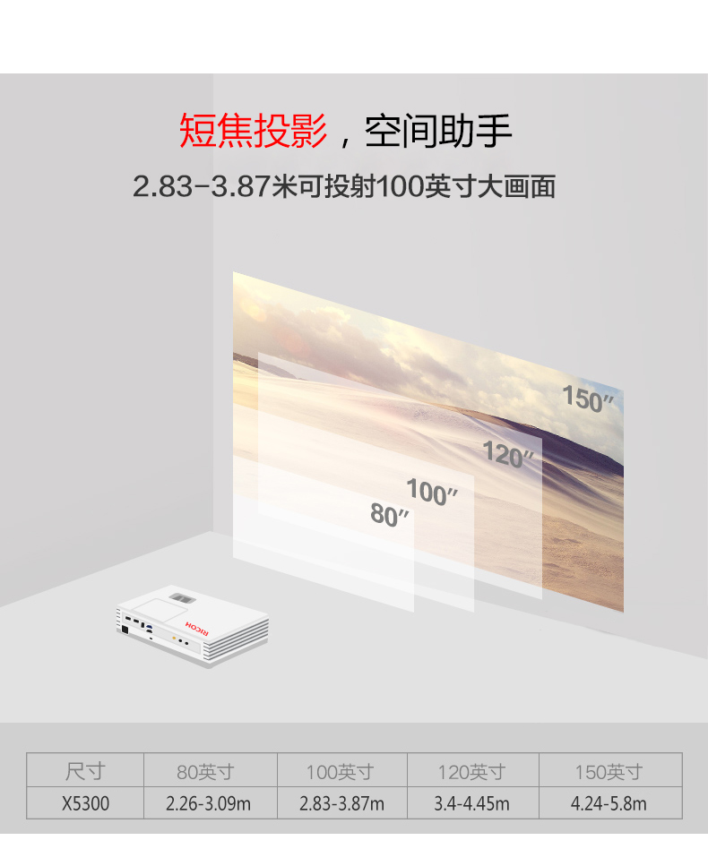 商品名称: 理光 RICOH PJ-X5300(DLP/4500流明/1024×768DPI)投影机