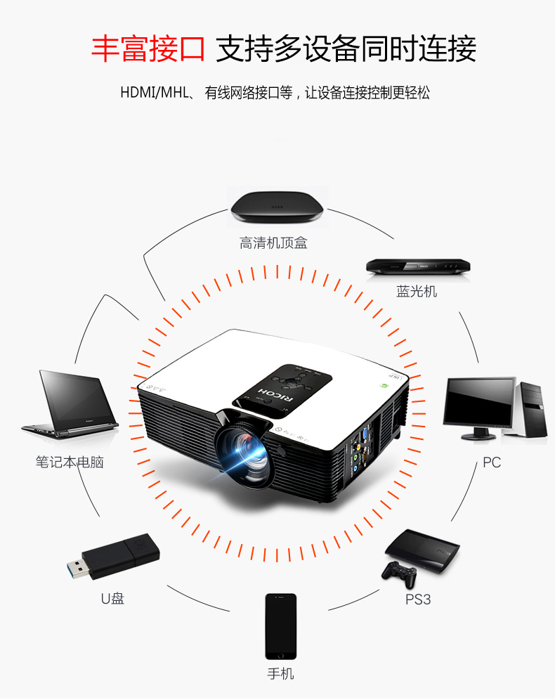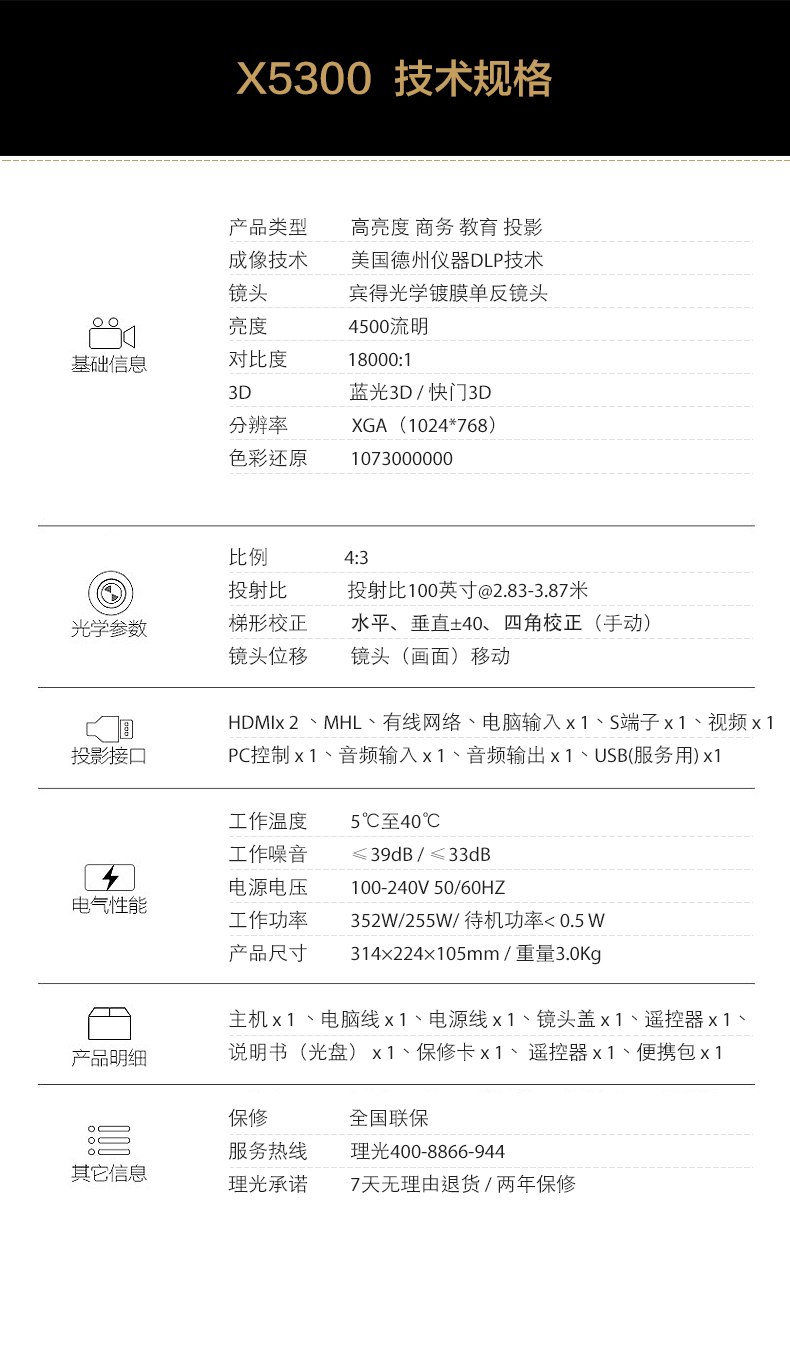 • 商品名称:理光 RICOH PJ-X5300(DLP/4500流明/1024×768DPI)投影机