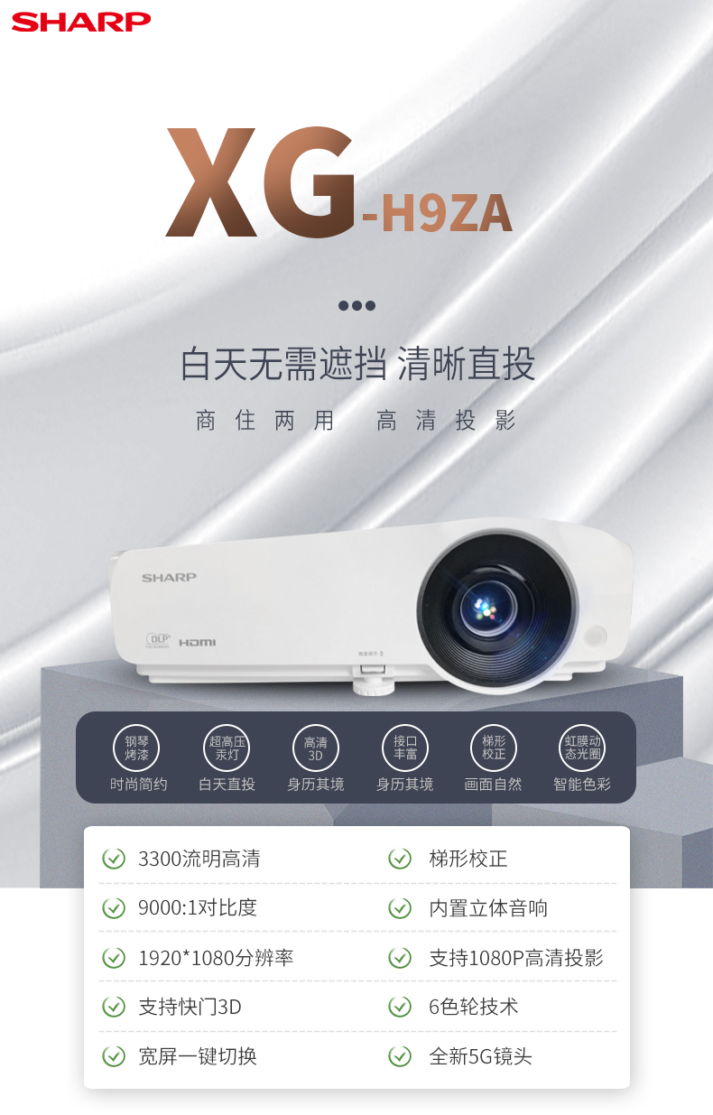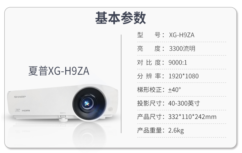 • 商品名称:夏普 SHARP XG-H9ZA(DLP/3300流明/1920×1080DPI)投影机