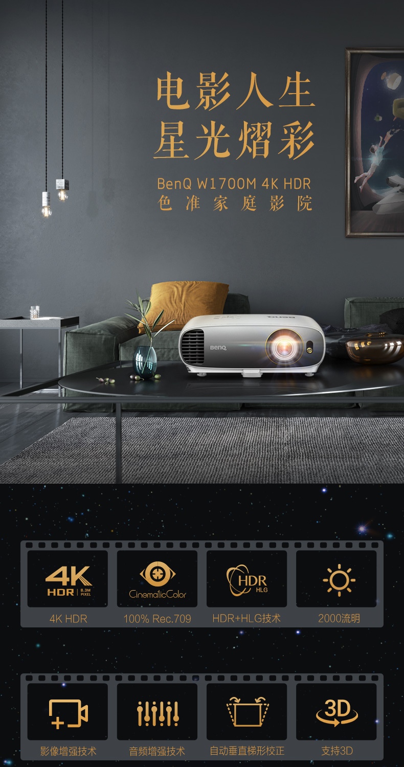 明基 BENQ W1700(星辰4KUHD分辨率2200流明HDR3DHDMI2.0接口)投影机