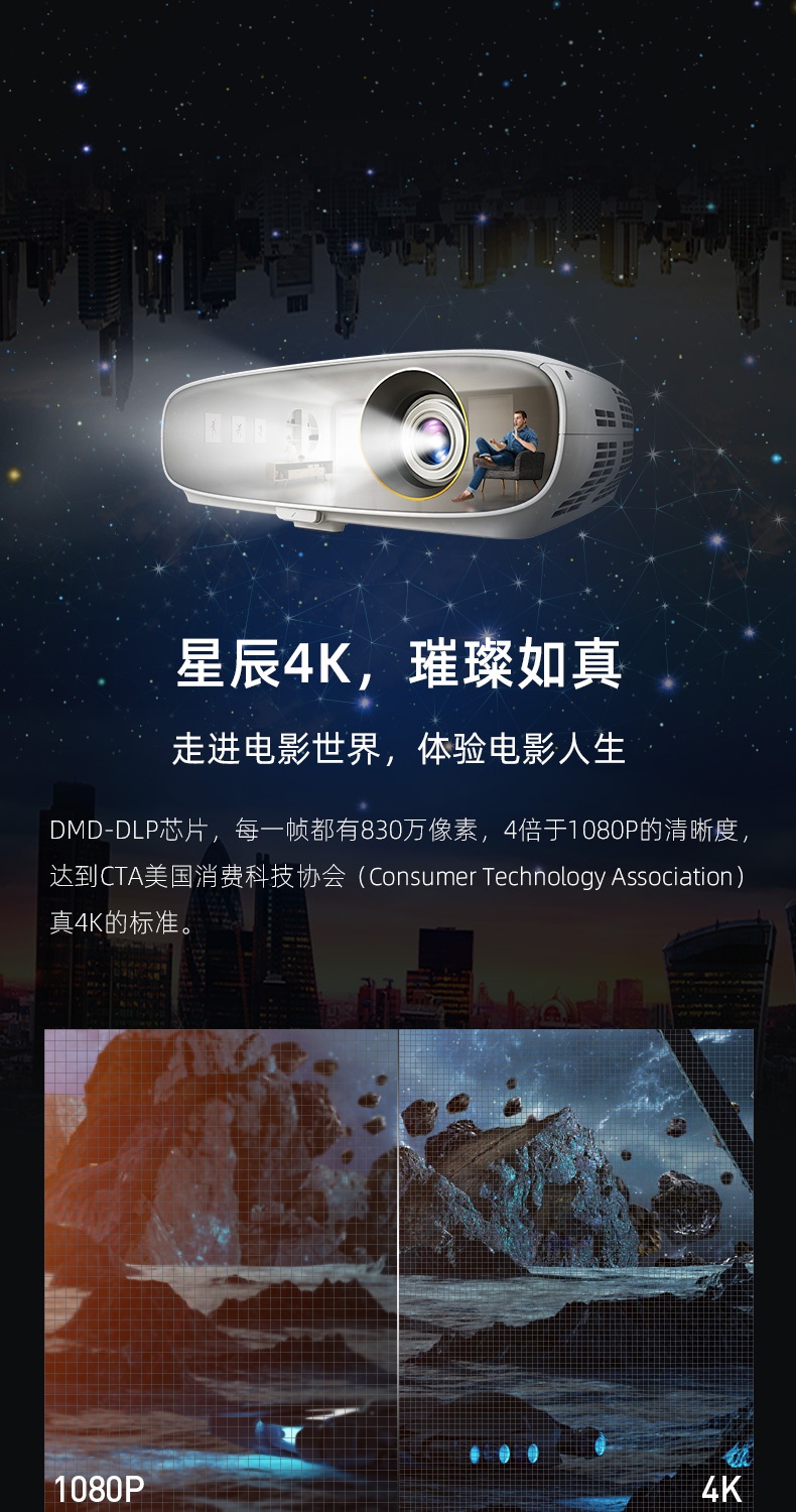 • 商品名称:明基 BENQ W1700(星辰4KUHD分辨率2200流明HDR3DHDMI2.0接口)投影机