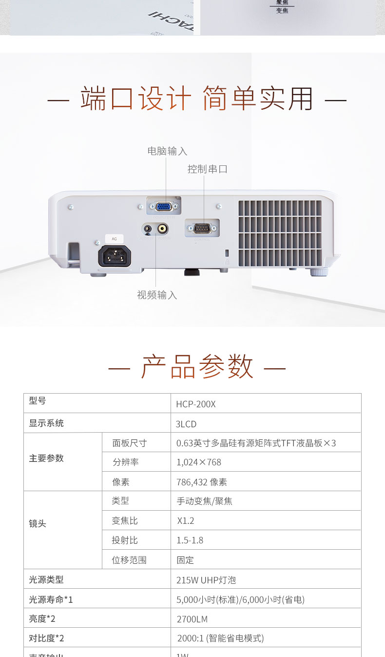• 商品名称:日立 HITACHI 200X(LCD/2700流明/1024×768DPI)投影机