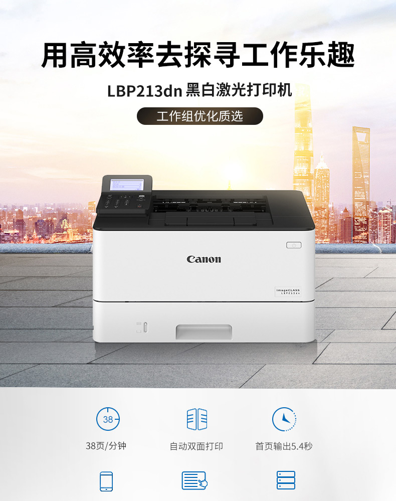 • 商品名称:佳能 CANON IMAGECLASS LBP213DN(无线/有线网络打印/自动双面打印/黑白)激光打印机