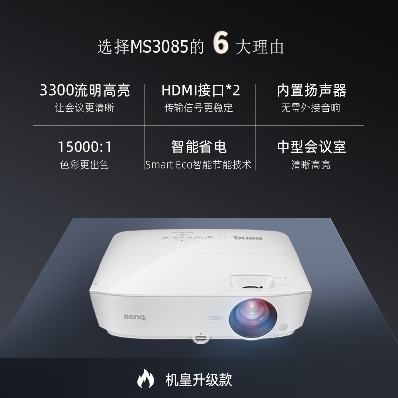 • 商品名称:明基 BENQ MS3085(DLP/3300流明/800×600DPI)投影机