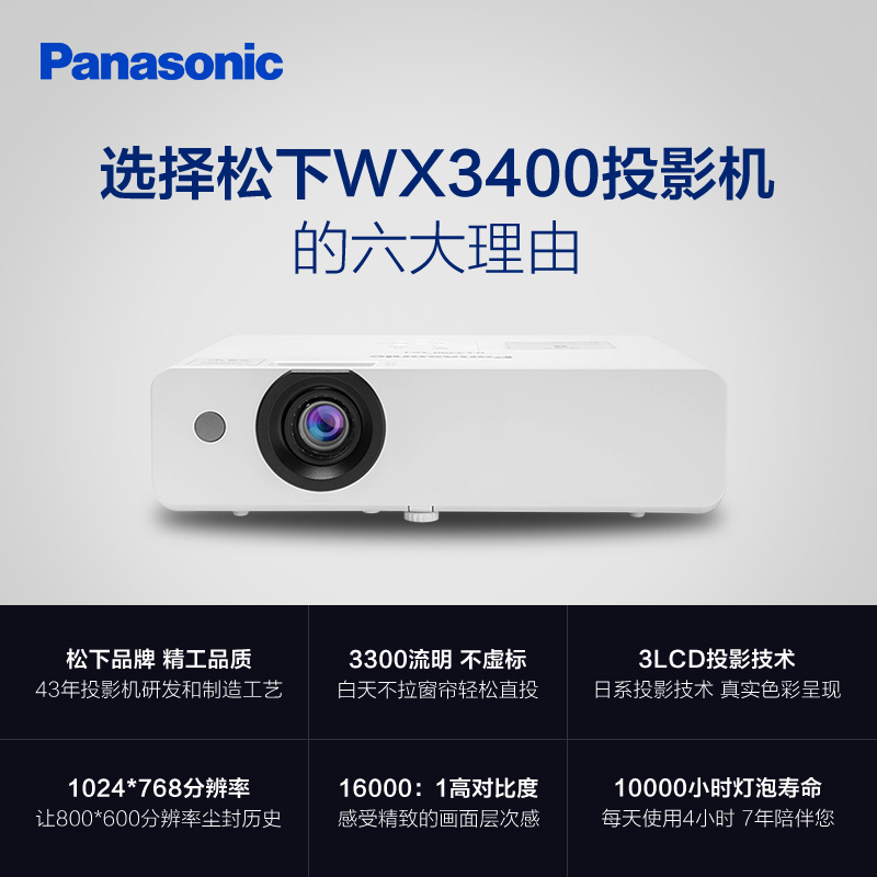 松下 PANASONIC WX3400(3LCD/3300流明/1024×768DPI)投影机