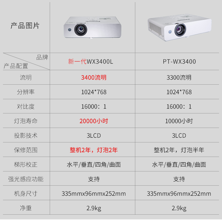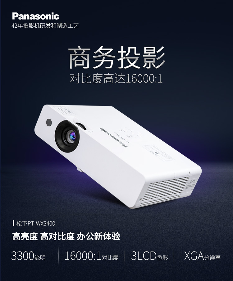• 商品名称:松下 PANASONIC WX3400(3LCD/3300流明/1024×768DPI)投影机