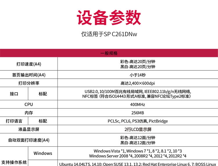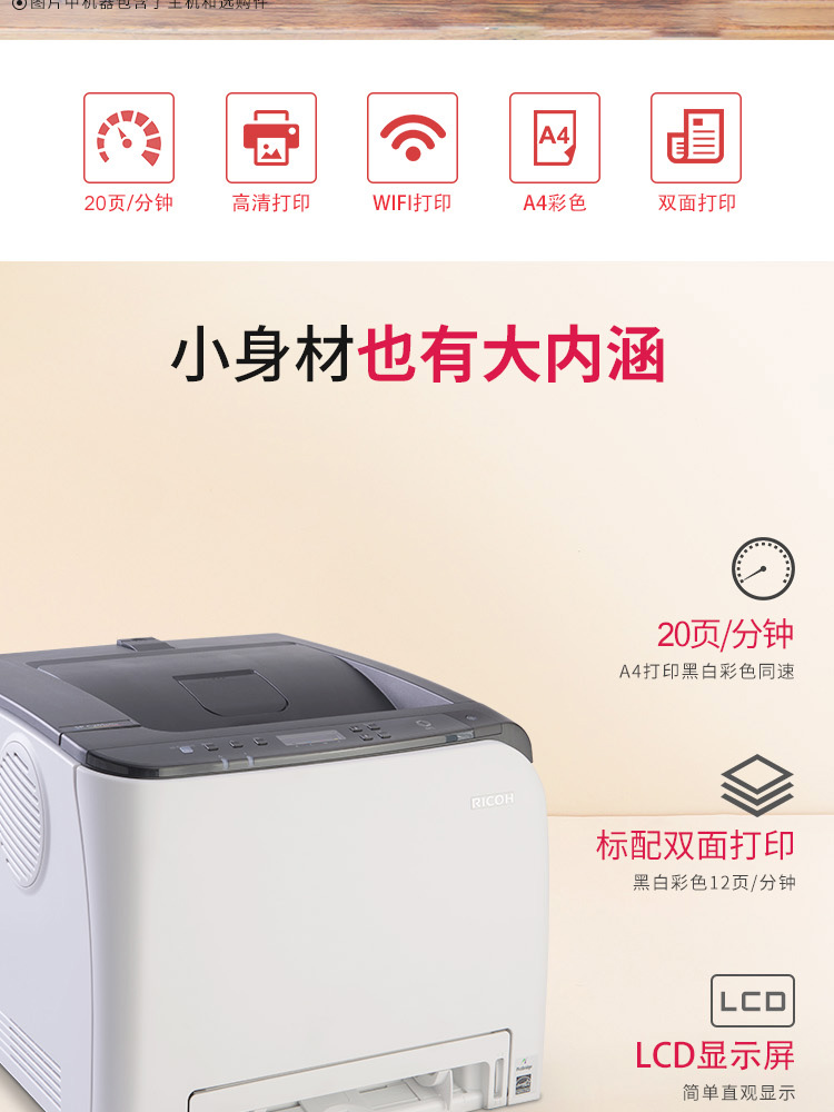 • 商品名称:理光 RICOH SP C261DNW(无线/有线网络打印/自动双面打印/彩色)激光打印机