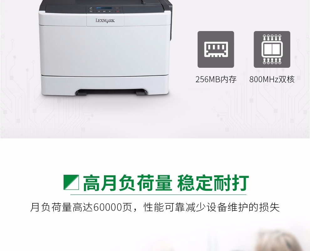 • 商品名称:利盟 LEXMARK CS310DN 有线网络打印/自动双面打印/彩色激光 激光打印机