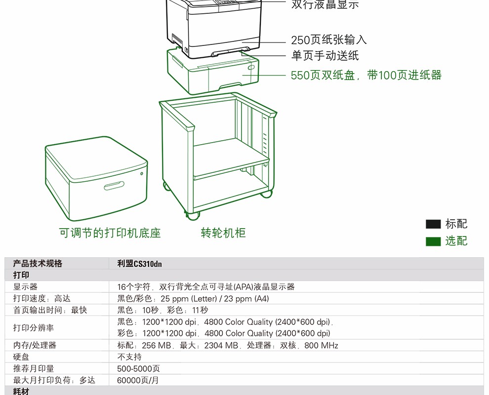 办公设备  > 打印/复印设备  > 激光打印机  >  利盟/LEXMARK  >  利盟 LEXMARK CS310DN 有线网络打印/自动双面打印/彩色激光 激光打印机