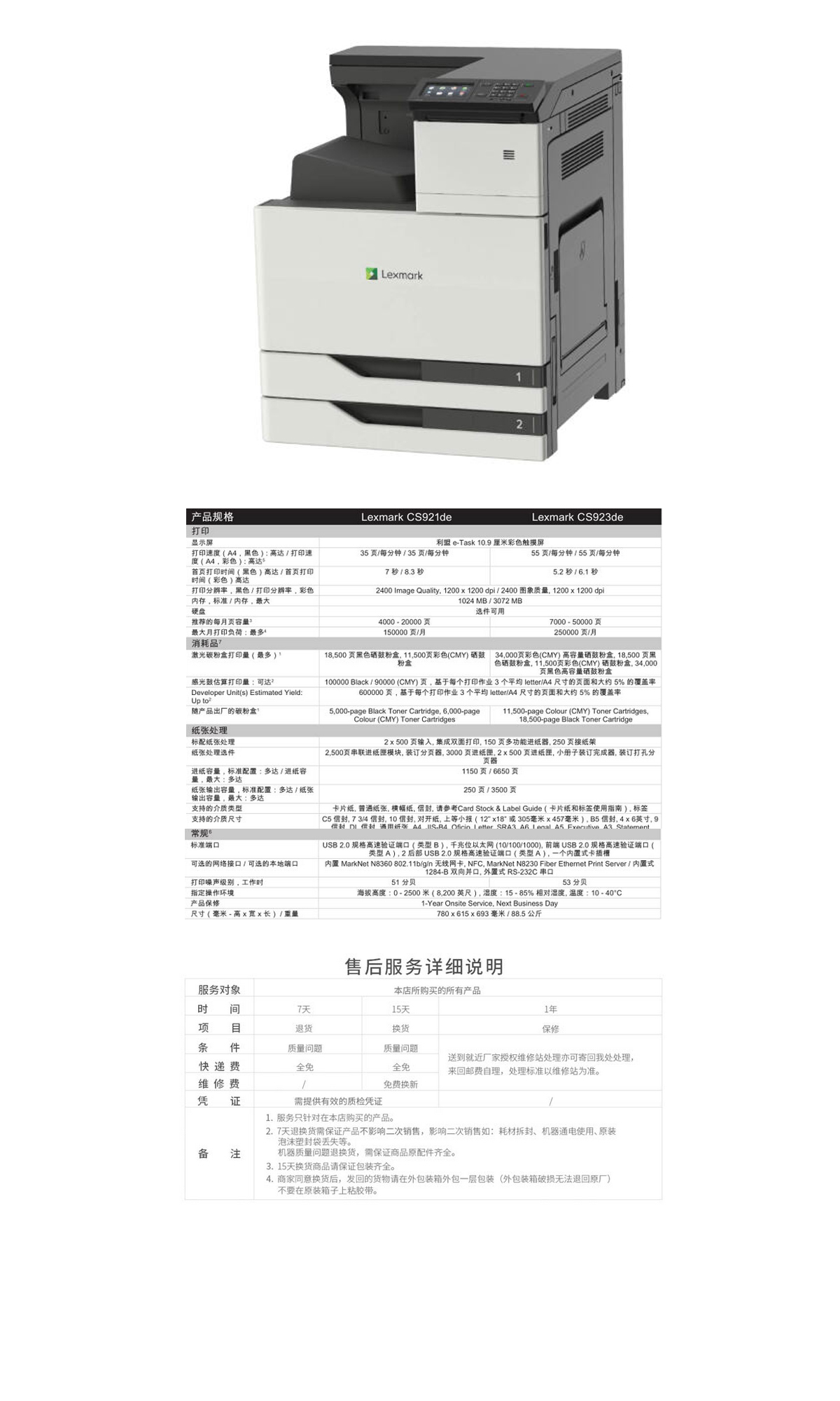 商品名称: 利盟 LEXMARK CS921DE(自动双面打印/彩色)激光打印机