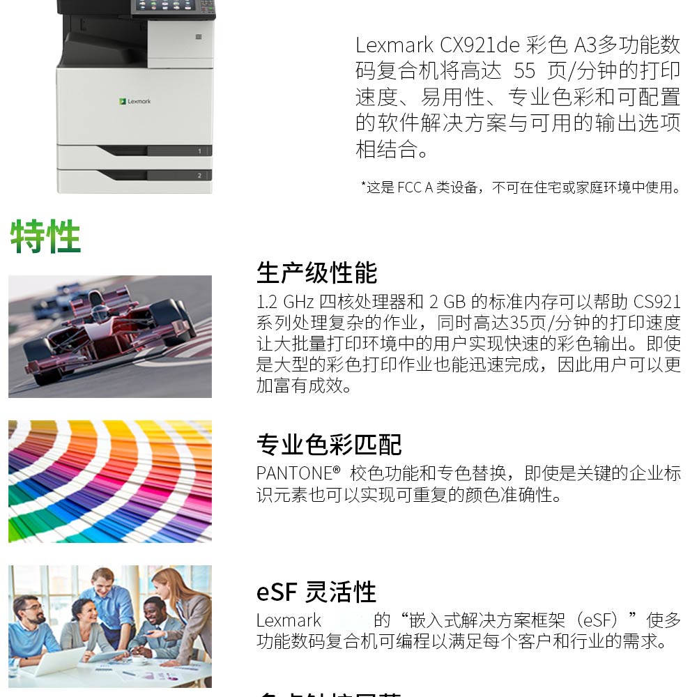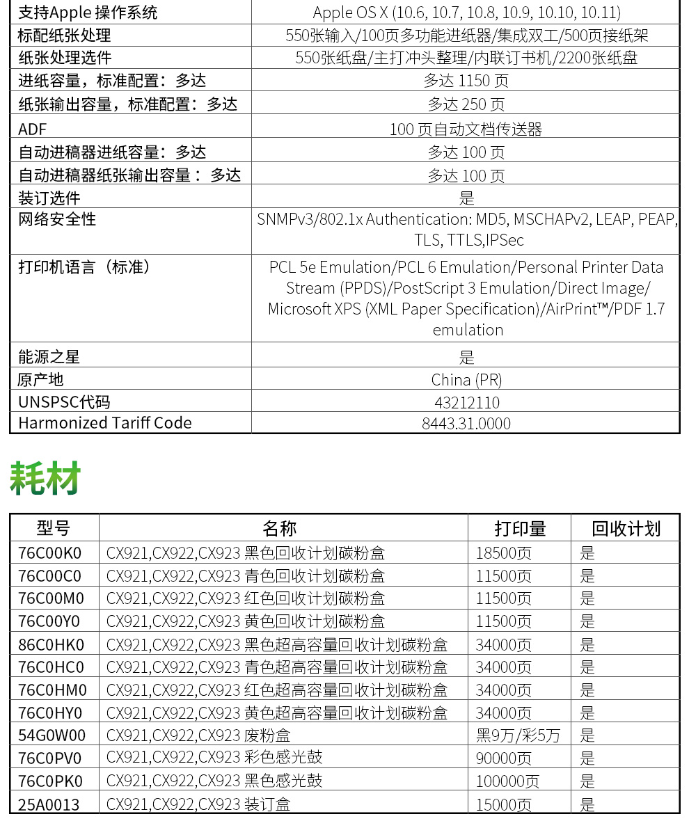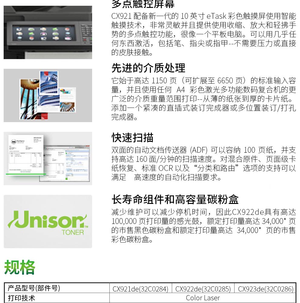• 商品名称:利盟 LEXMARK CX922DE(有线网络打印/手动双面打印/彩色/)激光打印机